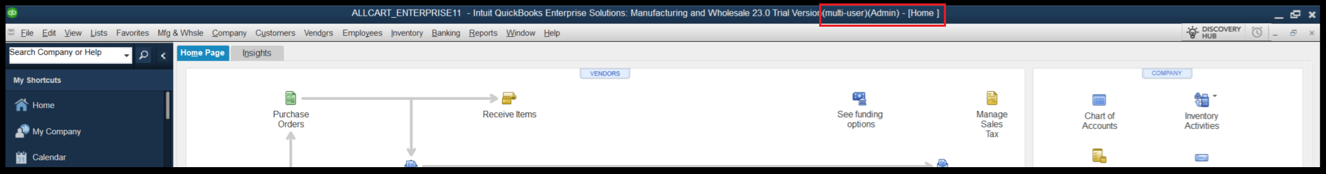 2. Now log in with the admin credentials in case of multi-user mode, and once QuickBooks Desktop is opened, make sure at the top of the pane (Admin) is visible along with the QuickBooks Desktop version.