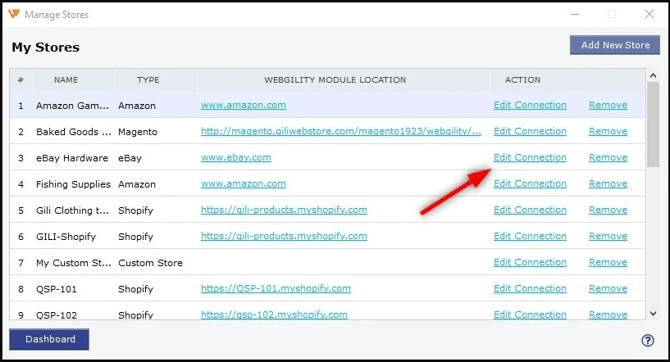 2. To update the connection on the Manage Stores screen click Edit Connection on the eBay profile. If you are adding a new sales channel, skip this step.