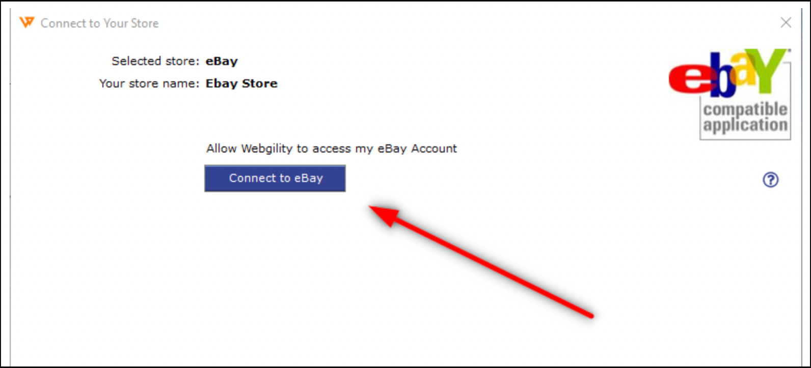 4. On the next screen click Connect to eBay to reauthorize Webgility Desktop and re-establish the connection to the eBay account using new Oauth flow.
