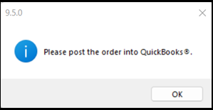 Note: If you haven't posted an order into QuickBooks, you will receive an alert message prompting you to post the order to complete this action.
