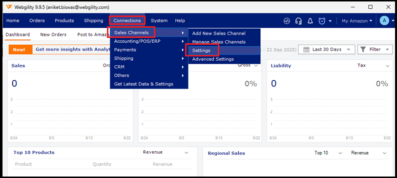 Navigate to the Connections > Accounting/POS/ERP > Sync settings.