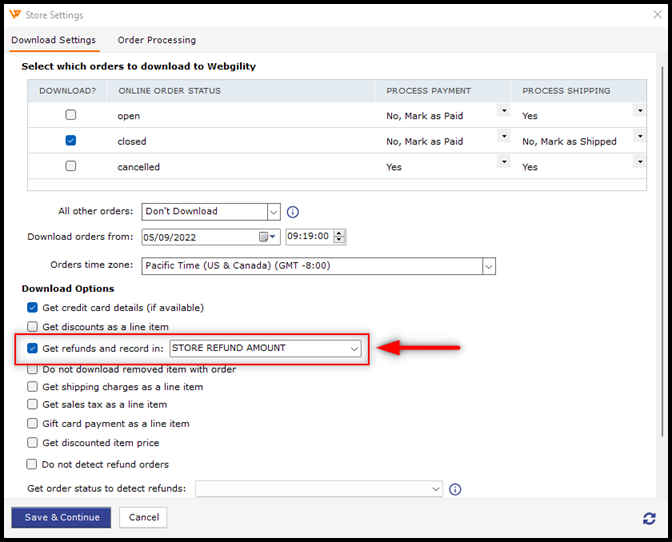 NOTE: If you are using Webgility Scheduler to automate order posting, you can check Post refund to automatically post the refund after it is downloaded.