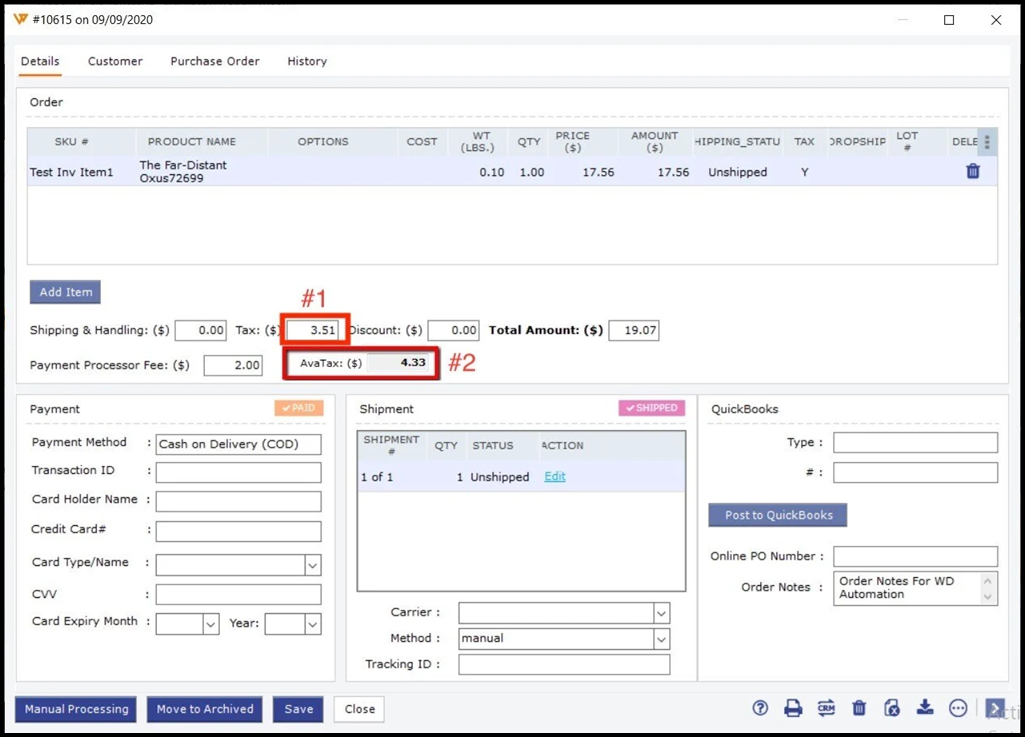 Note: An order should be in the state where it is ready to be posted to QuickBooks Desktop so that Avalara AvaTax calculates the taxes at the correct time.