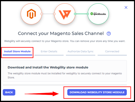 4. The subsequent step involves downloading the Webgility Extension file and installing it as a Magento extension.