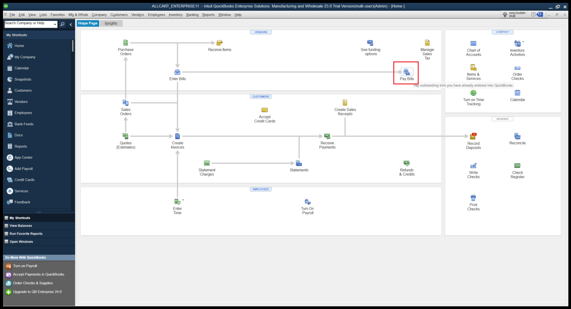 1. In Quickbooks Desktop navigate to Pay Bills.
