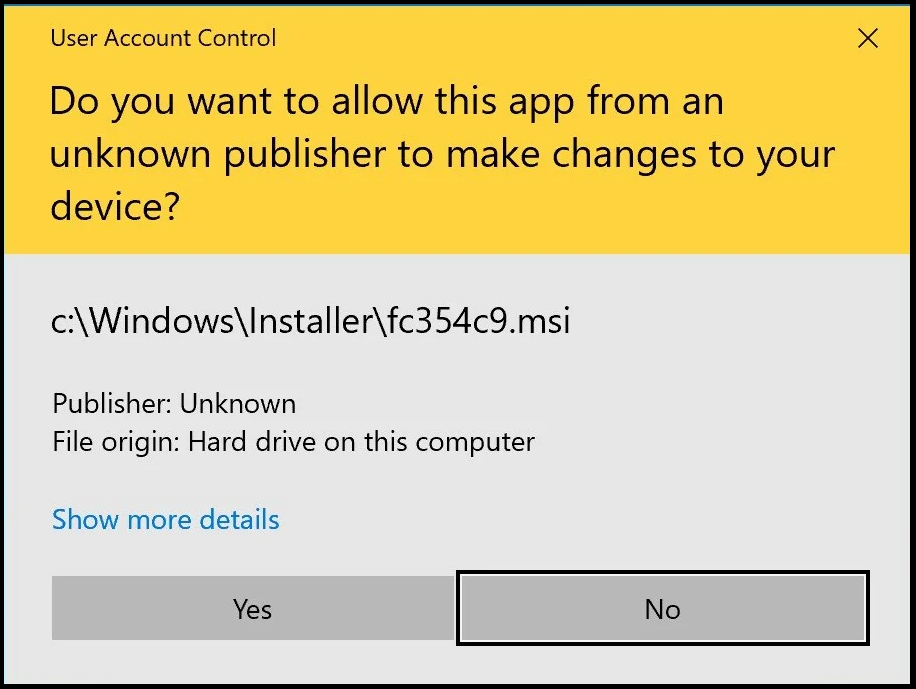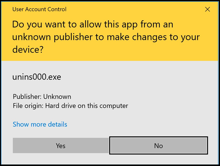 5. In the User Access Control window, click Yes.
