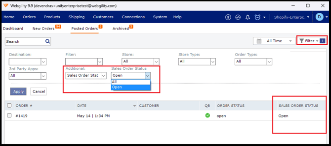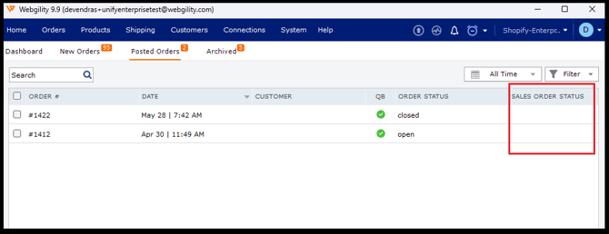 If you are a QuickBooks Enterprise customer who uses the Pick, Pack, and Ship workflow, you can view the sales order status in Webgility Desktop. Webgility Desktop also downloads the shipment information and sales order status from QuickBooks, so you can view and filter the option in Webgility Desktop order screens.
