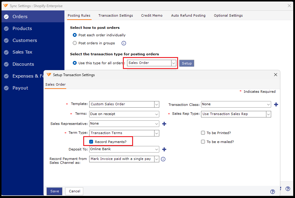 Configure Webgility Desktop Transaction and Fulfillment Settings
