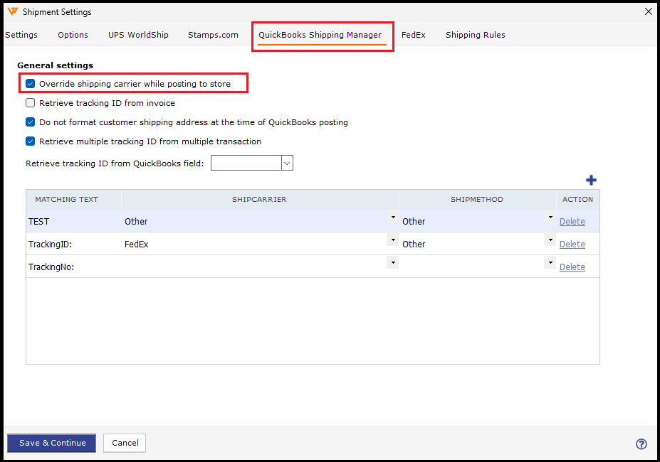 Then select Override shipping carrier while posting to the store.