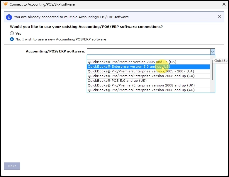 3). Select the correct version of QuickBooks from the drop-down menu.