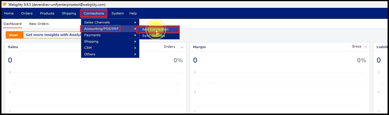 2). Navigate to Connections > Accounting/POS/ERP> Add Connection