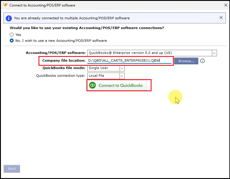 4). Launch the QuickBooks company file you want to connect to Webgility Desktop.