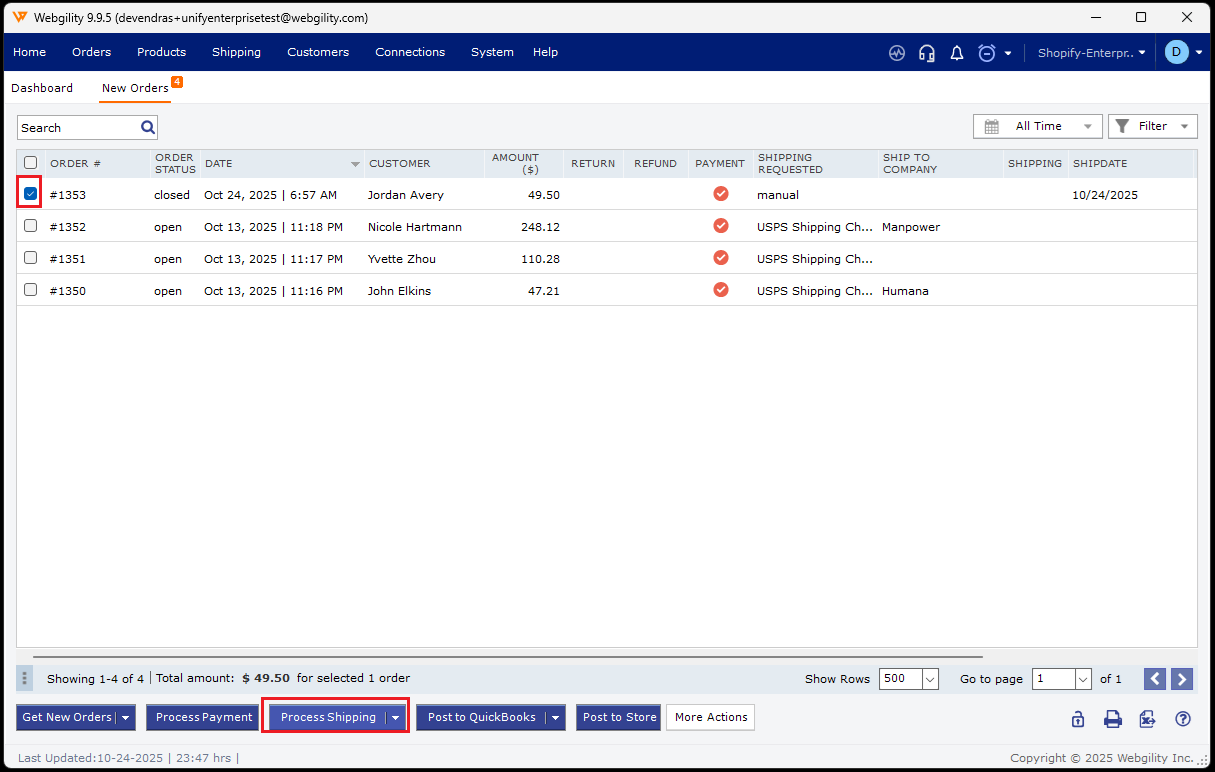 11. Once all settings are configured, go to New Orders and click Process Shipping to generate the labels.
