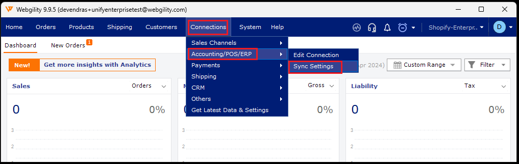 7. Navigate to Integrations > Accounting/POS/ERP > Posting Settings.