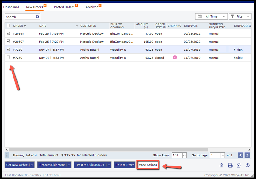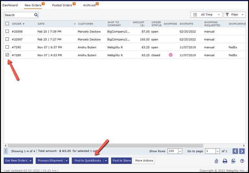 10. Post orders to your accounting software by selecting the orders that have shipped after downloading shipping details from ShippingEasy successfully. Click Post to QuickBooks.