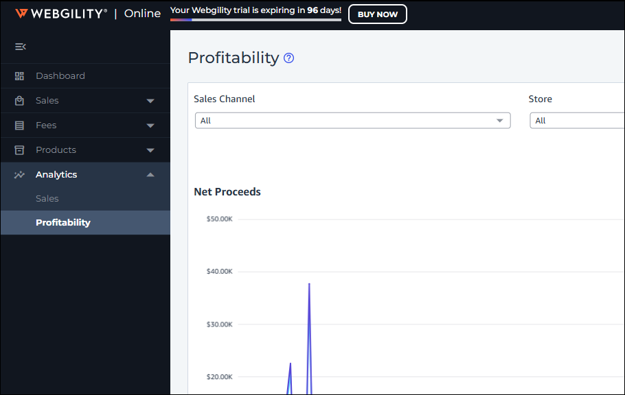 Explore profitability across your connected sales channels with Webgility Analytics.