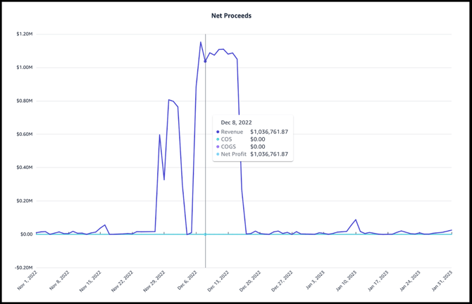 Taxes: Taxes collected from orders. Taxes display as negative (-) values, as they will be returned to the IRS.