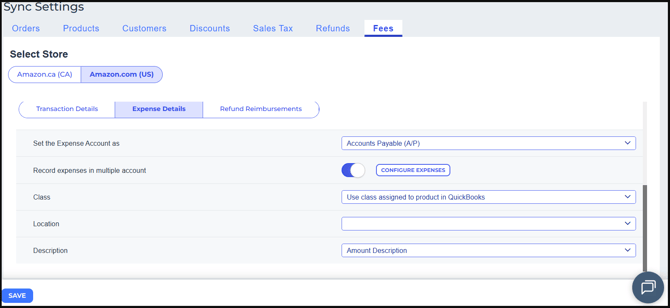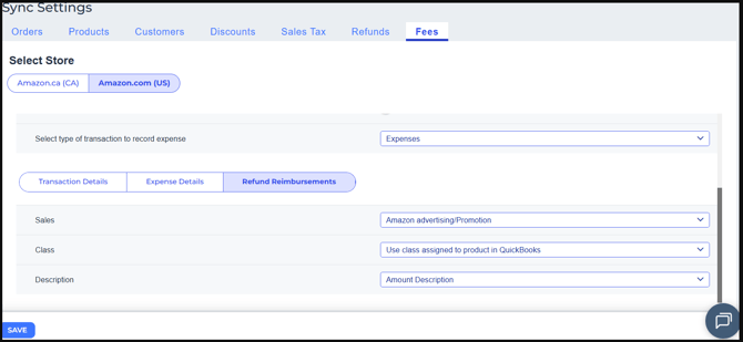 Within the Fees settings, you can adjust configurations for posting Amazon expenses and fees to QuickBooks Online. Activate the option to post settlement fees and ensure to click the refresh icon to retrieve the most recent data and settings from QuickBooks Online.