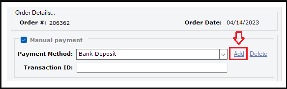 Processing payment manually on order: