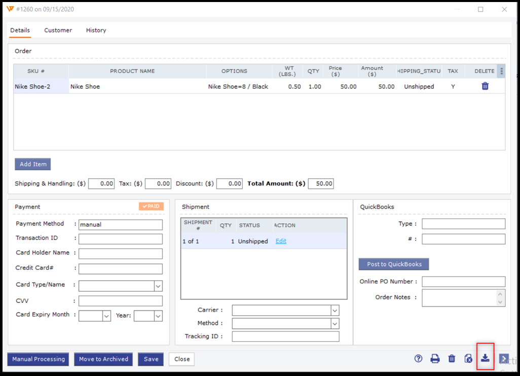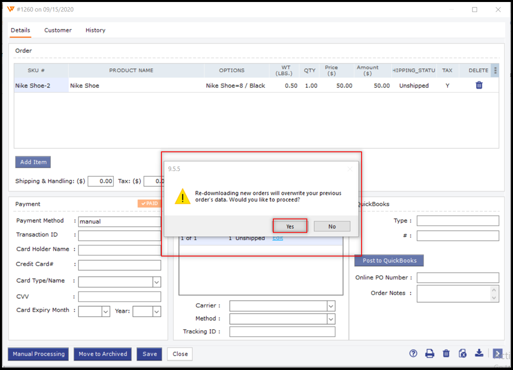 2). Redownload the order to download the missing items or the amount in the order in Webgility Desktop.