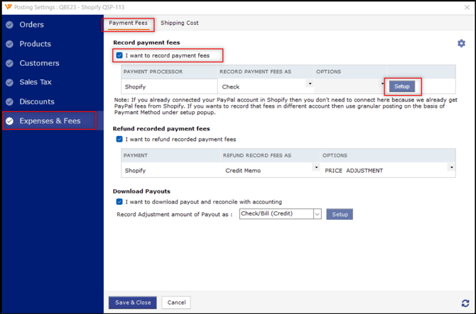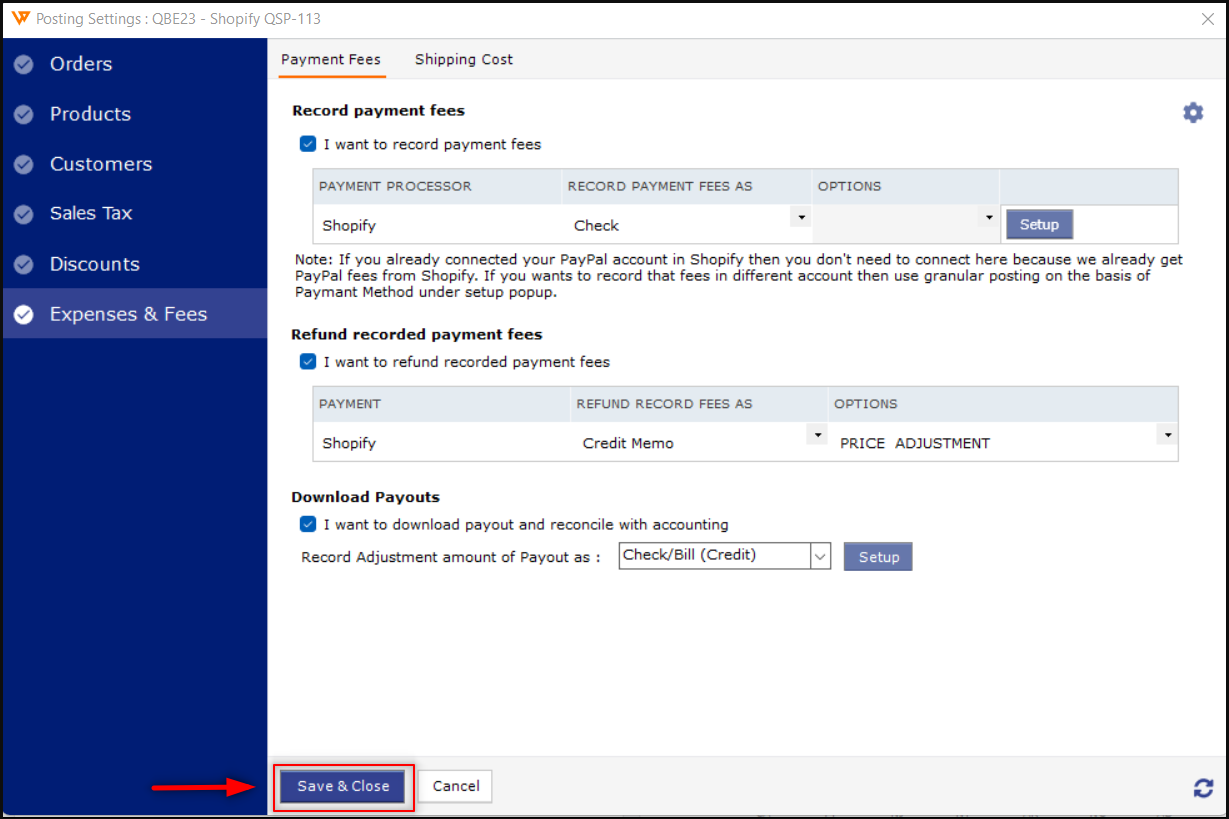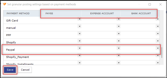 Note: If you are not using the Shopify Payout reconciliation setup in Webgility Desktop, you can follow the line item setupfor PayPal fee posting.