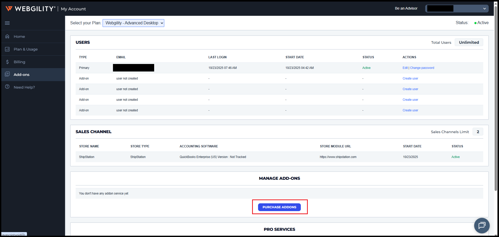 1. Please visit your Webgility Desktop Portal account using this LINK, and enter your login details.
