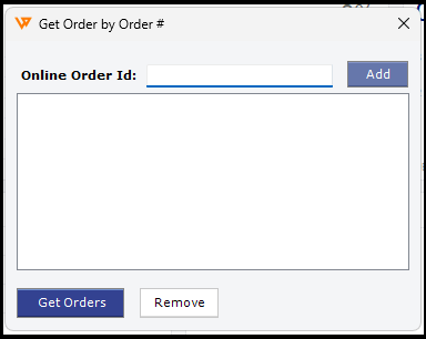 After entering an order number, click "Add" to add it to the list. You can enter multiple order numbers, but each one has to be added individually. Once you have entered all the desired order numbers, click on "Get Orders" to download the requested orders. In case you accidentally mistyped or need to remove an order from the list, you can select the specific order and click on "Remove" to remove it from the list.