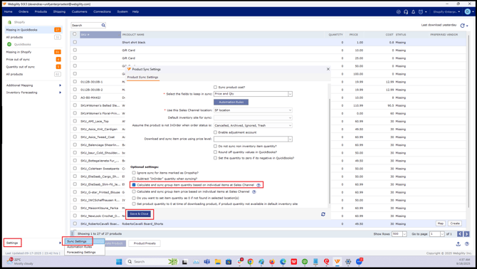 2). Now navigate to button section, hover over Settings > Sync Settings, enable the option "Calculate and sync group item quantity based on individual items at store” and click Save & Close.