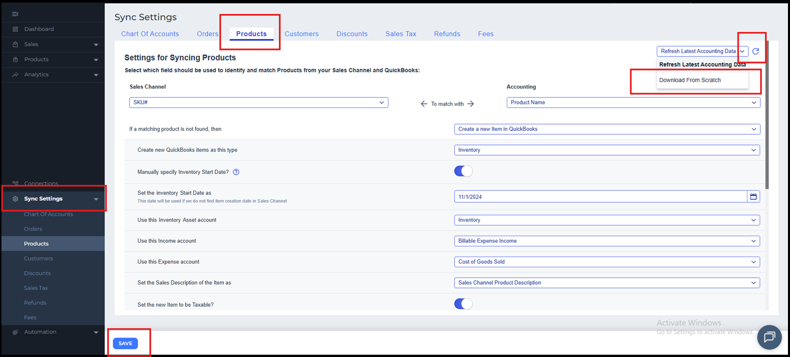 2). In certain instances, the item or customer data may have been updated in QuickBooks, prompting the need to re-download the data from scratch and save the settings.