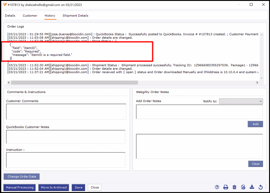 Item ID is a required field : You may get this error when you try to post an order to your sales channel.