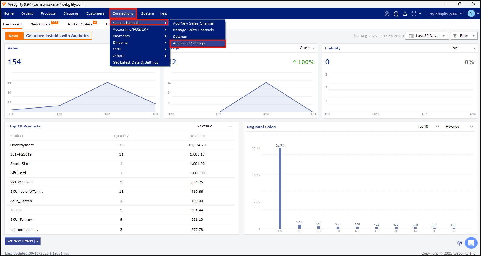 1). Navigate to Advanced Settings by following Connections > Sales Channels > Advanced Settings.