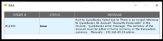 QuickBooks Posting Error: Invalid AR Account and Currency Mismatch - Post to QuickBooks Failed Due to There is an Invalid Reference to QuickBooks AR Account "Account receivable" in the Invoice.
