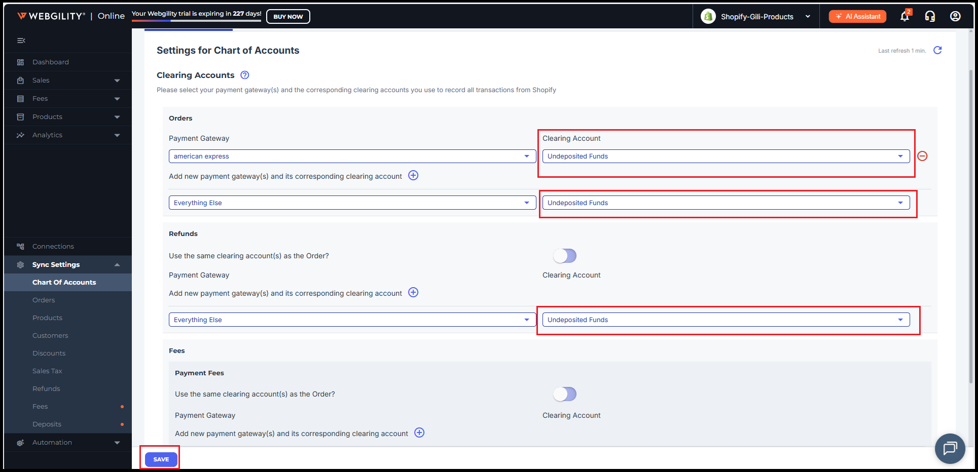 - Perform a sync between Webgility Online and QuickBooks Online to update any changes made to account settings. Follow the article