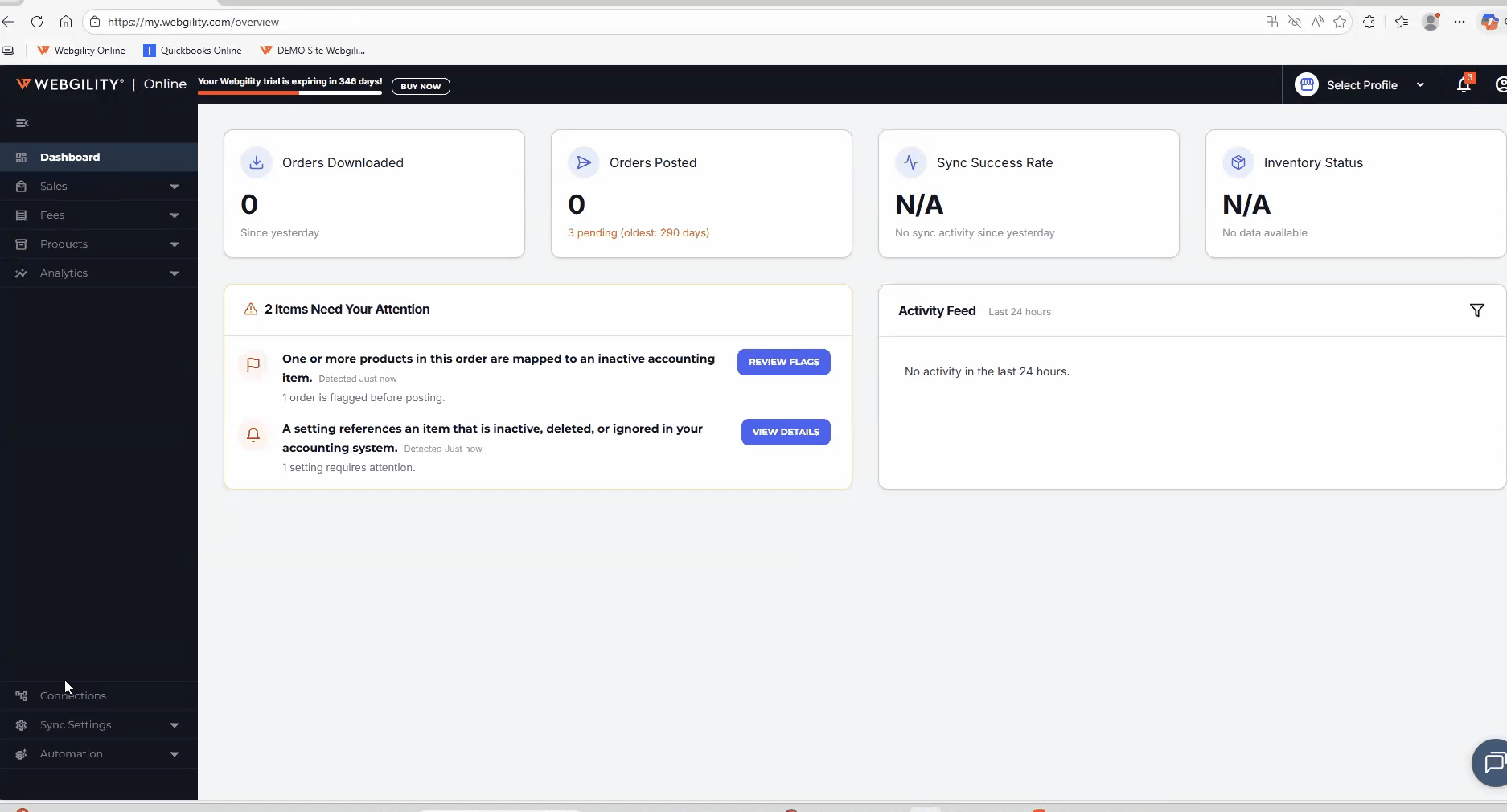 - Navigate to the Connections section in Webgility Online.