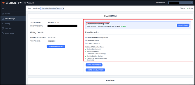 This article helps both Webgility Desktop users determine which Webgility subscription/plan they are using. It explains how to check their current plan details either from the Webgility Customer Portal directly or via the Webgility Desktop application.