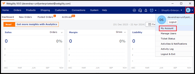 Login to portal.webgility.com to access your Webgility Portal Account