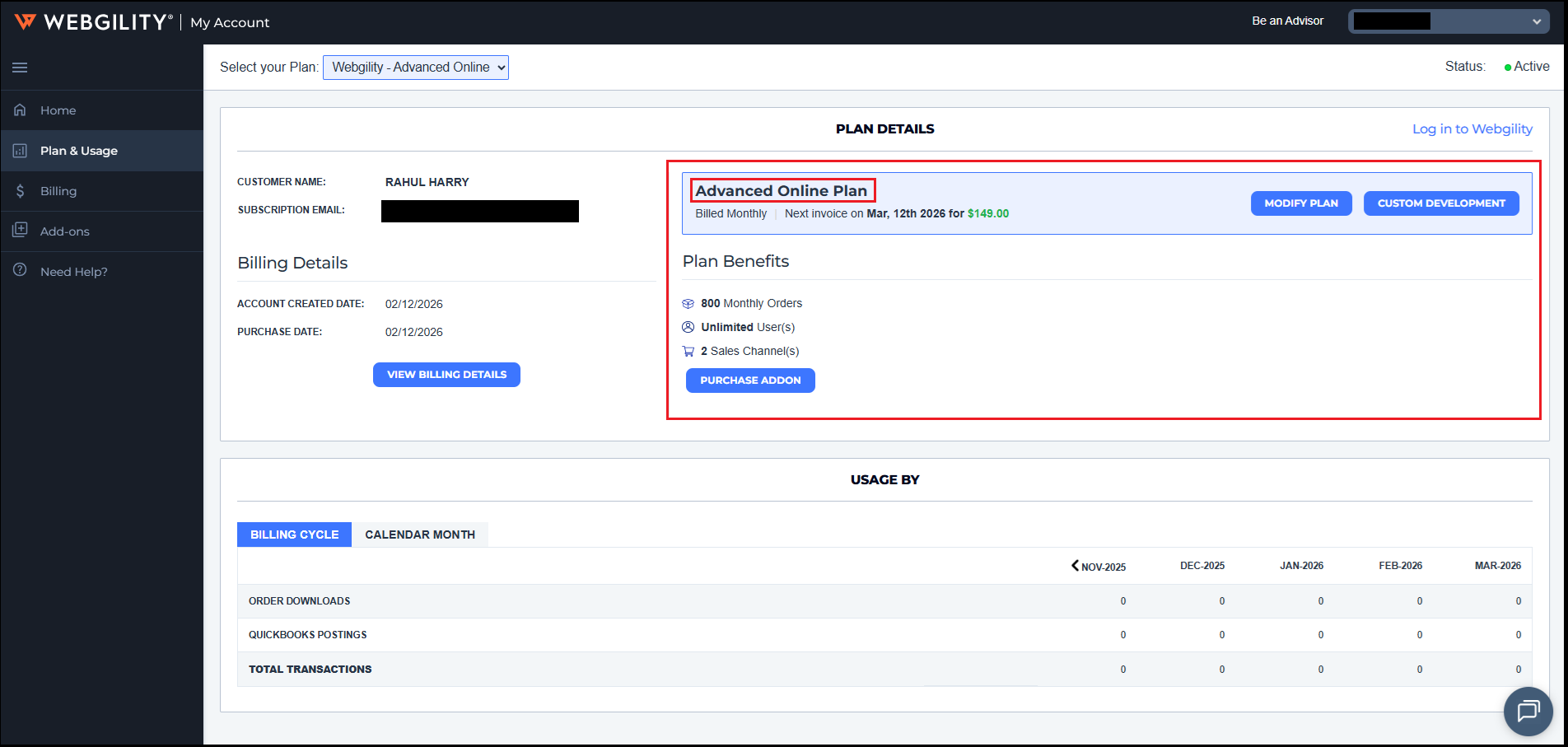 This article helps Webgility Online users determine which Webgility subscription/plan they are using. It explains how to check their current plan details either from the Webgility Customer Portal directly or via the Webgility Online application.