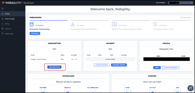 If you are an existing Webgility Desktop customer and wish to purchase a new plan then please access the customer portal and click on Add New Plan to sign up for a new plan under the same subscription email