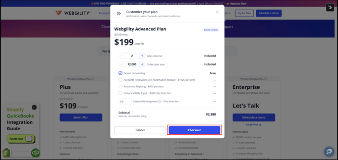 This article helps existing Webgility Desktop customers purchase an additional plan under their current subscription. It provides step-by-step instructions for accessing the customer portal, selecting a new plan, and completing the checkout process to ensure a smooth expansion of services.