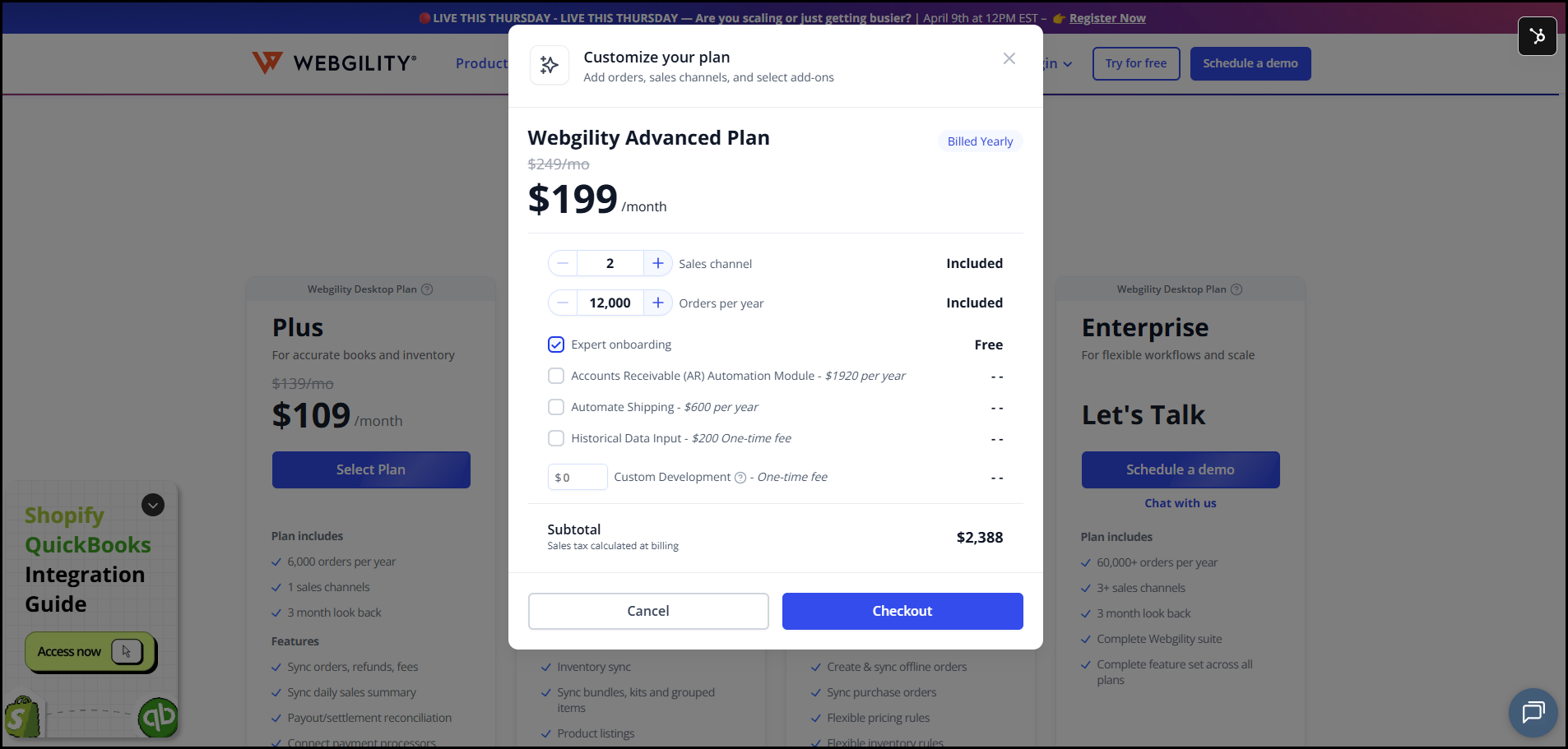 2. Once you click Reactivate, it will take you to the Webgility pricing page.