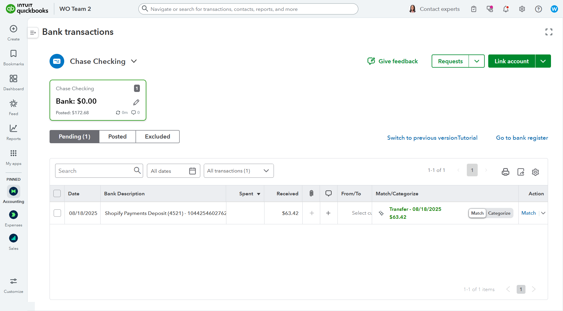 Your Goal: To connect the QuickBooks transaction with the actual money that arrived from Shopify in your real-world bank account. This is the most important step in bank reconciliation.