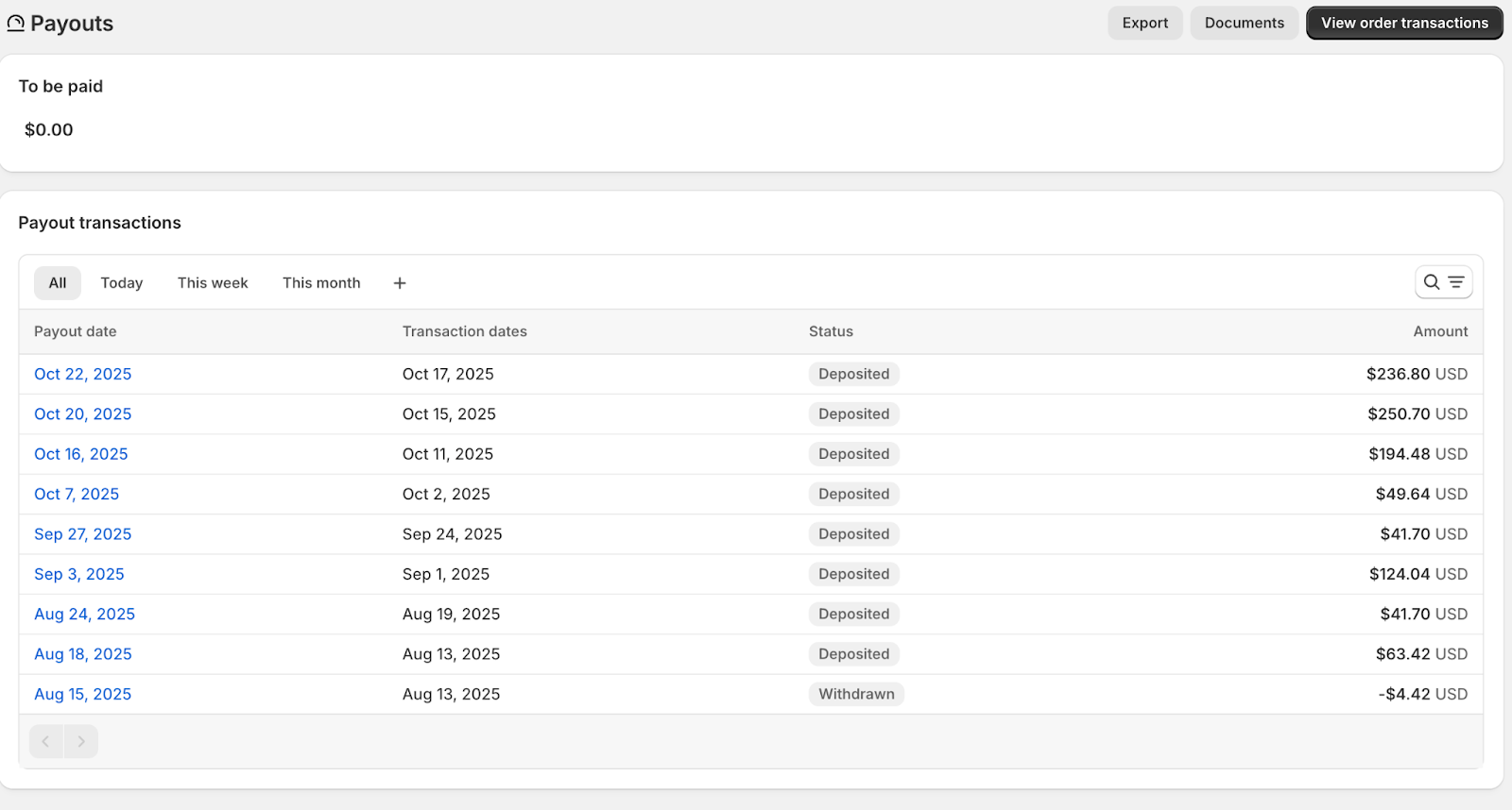 - Check Payout Details (Optional): If you want to see exactly which orders make up that payout, click on the payout itself. This will open a detailed view showing all the individual orders and transactions included.