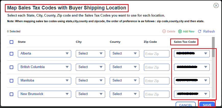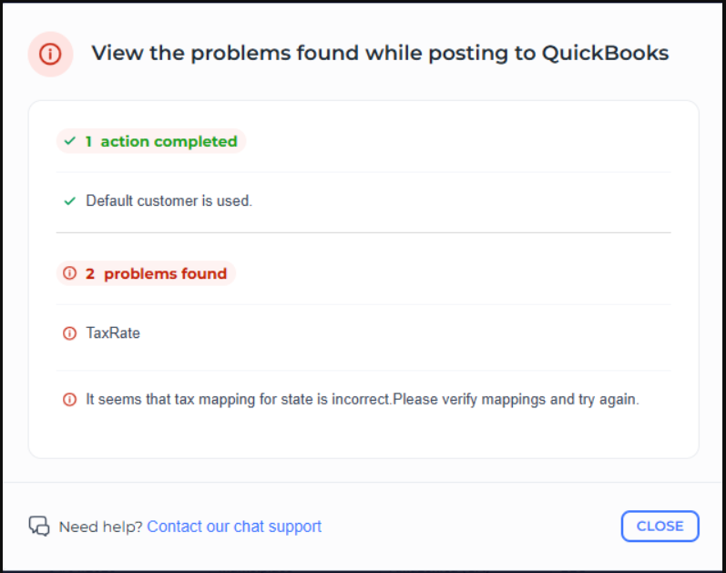 Tax rate, It seems that tax mapping for state is incorrect. Please verify mappings and try again