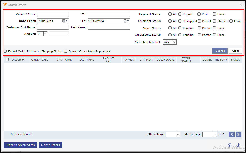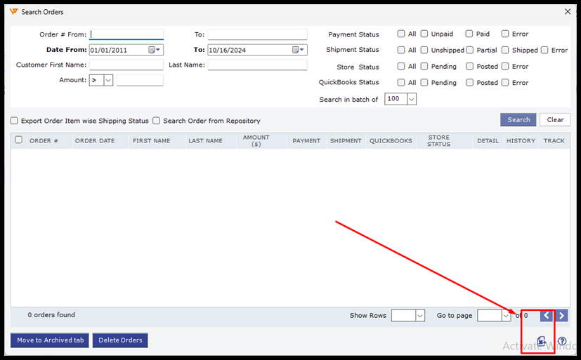Method 2: Exporting from the Search Orders Tab