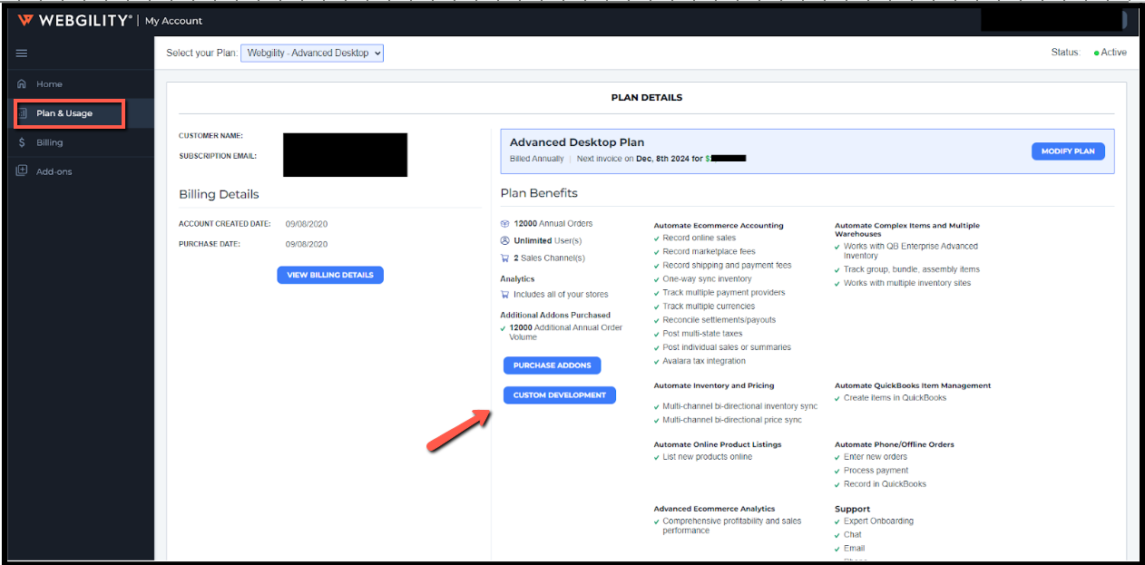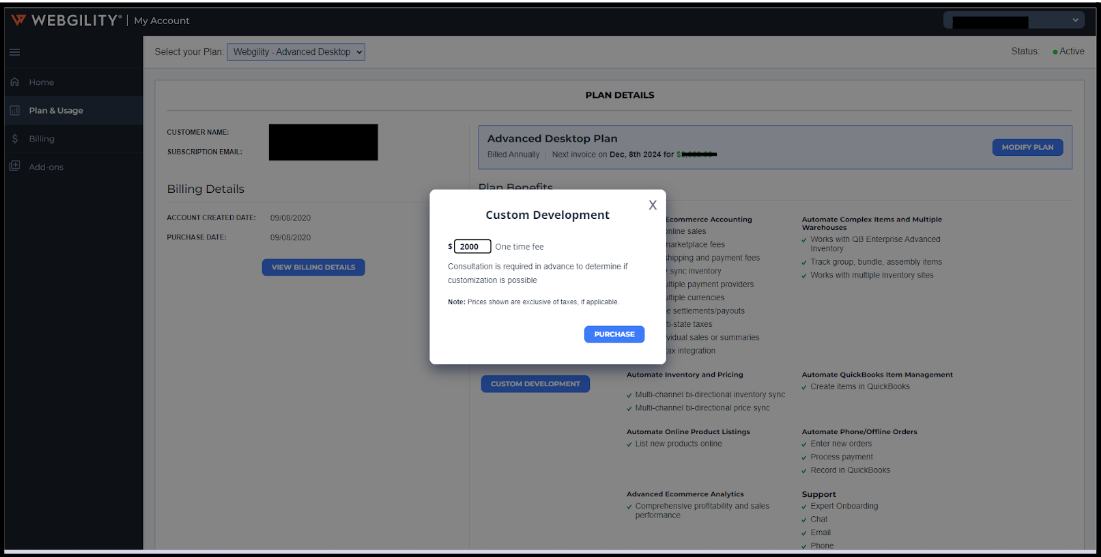 When Webgility adds custom features or modifications to your Webgility Desktop app, a one-time customization fee will be required. These charges are separate from your regular subscription.