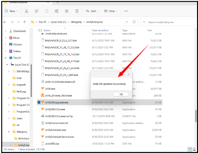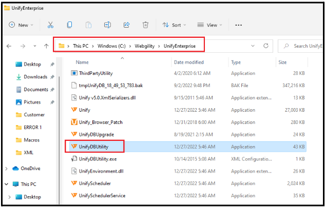 Open UnifyDBUtility and follow the prompts to execute the utility.