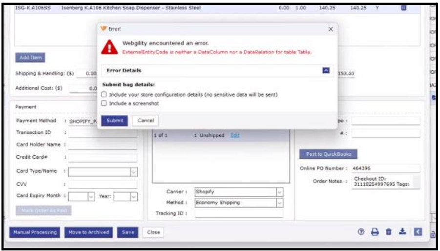 This article helps Webgility Desktop users resolve the error “ExternalEntityCode is neither a DataColumn nor a DataRelation for table Table†encountered in Webgility Desktop. This error typically occurs during order download or redownload due to database inconsistencies. Running the UnifyDBUpgrade tool optimizes the database and resolves these issues, ensuring smooth operation of Webgility Desktop.