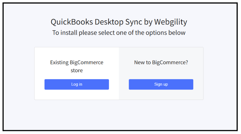 You'll be redirected to the BigCommerce login screen. Select the option to log in to an existing BigCommerce account and proceed.