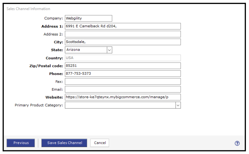 Next, enter the Sales Channel information and click Save Sales Channel.