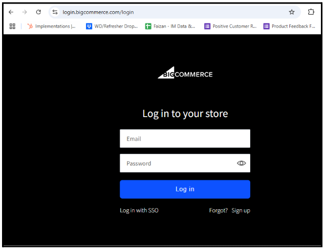On the "Log in to Your Store" screen, enter your BigCommerce admin login credentials and select "Login."